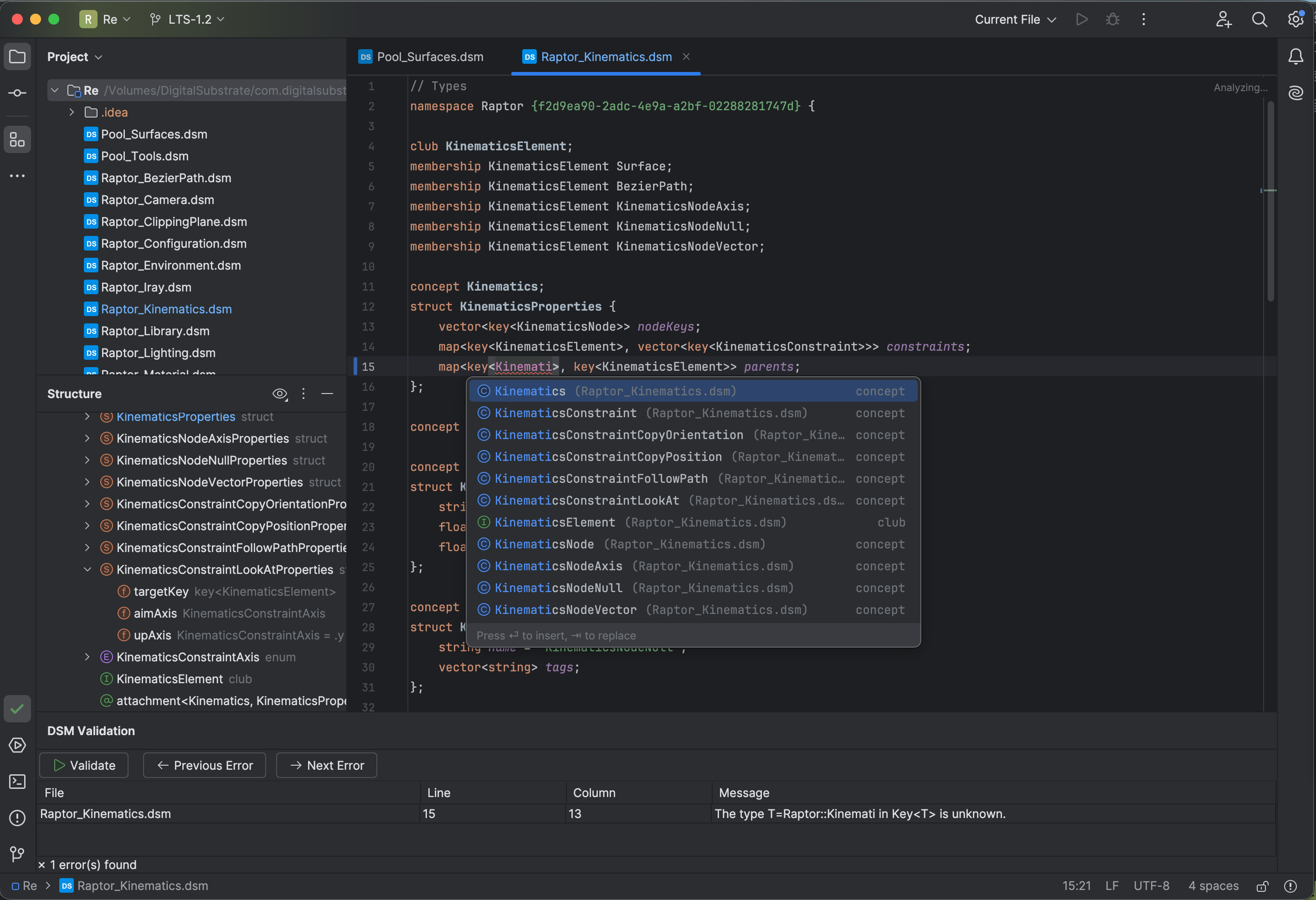 DSM (Digital Substrate Model) is a declarative language for defining your application's data model. Instead of writing repetitive boilerplate code, you describe what your data looks like, and Kibo generates the how.